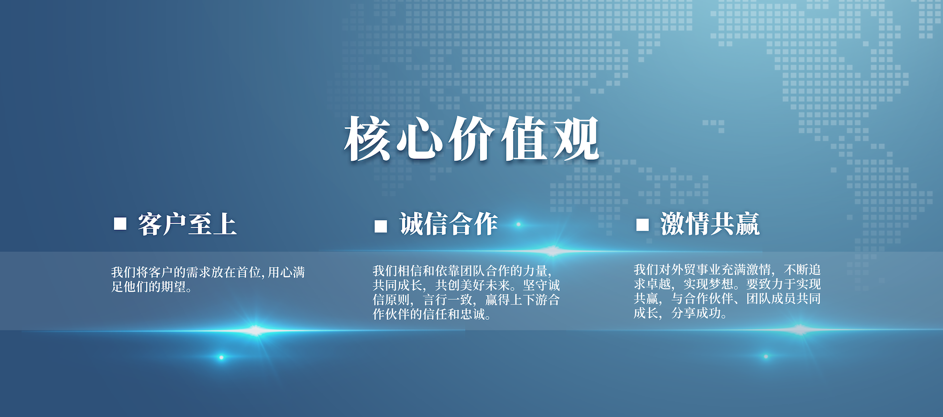 公司從成立伊始就緊緊圍繞外貿主業,充分發揮擁有國際營銷渠道及掌握國際市場信息的優勢,著力優化業務結構,轉變增長方式,提高經營質量,強化以客戶需求為原動力的供應鏈管理,建設出口商品生產基地。公司力爭發展成為以外貿為龍頭、實業為基礎、科技為依托,貿工技一體化發展的一流國際經貿企業。